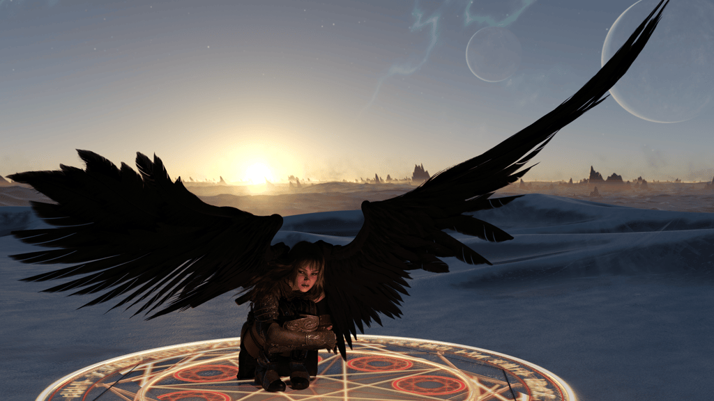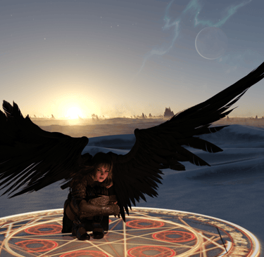 If you walk the cliff road at night you’ll hear the wind organs we built from old satellite ribs singing to the magnetosphere. They don’t make a pretty sound, but they remind us that this planet is still awake. Sometimes I hold watch alone and feel the whole map inside me at once—the Furnace pulsing, the Borderlands breathing, the North listening. On those nights I think of the first time I stood in the rain among the wrecks and skeletons of old buildings with my wings open and realised the memory of the world is long, but our duty is longer.