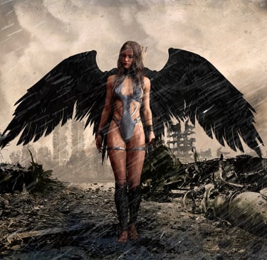 I am Aureilia, The Dark Angel. The world ended, yes. We did not. And as long as these feathers can find a current and these hands can loose an arrow, the horizon is ours to keep.