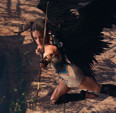 I was three when they put a bow in my hands. It was barely more than a curved twig, but it taught me the first truths: breathe, align, release. The bow was my first weapon and I used it every day, by five I was good, by ten I was flying training circuits firing at moving targets and I never missed. My mother strung a cord between two pillars and told me to thread the same breath of air ten times. I did. She didn’t smile—she only nodded, once, like a tally scratched on stone.